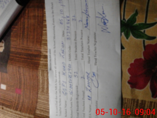 | Monitoring Date: 05-10-2016 | Start Time: 05-10-2016 08:31 AM | End Time: 05-10-2016 09:57 AM | Name of MEA: Re**** Mu**** Za**** | |