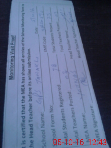 | Certified that this School was Inspected by the Undersigned MEA/DMO Today and the Information Stated Above is as Per Record. | |||||