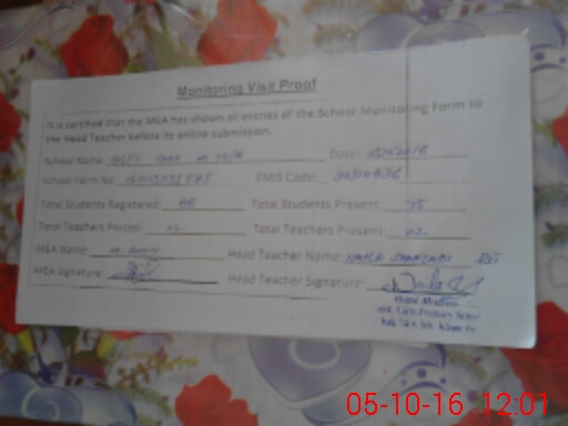 | Certified that this School was Inspected by the Undersigned MEA/DMO Today and the Information Stated Above is as Per Record. | |||||