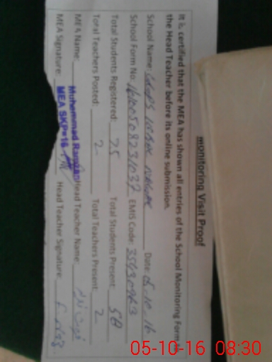 | Certified that this School was Inspected by the Undersigned MEA/DMO Today and the Information Stated Above is as Per Record. | |||||
