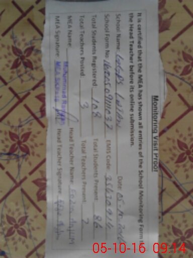 | Certified that this School was Inspected by the Undersigned MEA/DMO Today and the Information Stated Above is as Per Record. | |||||