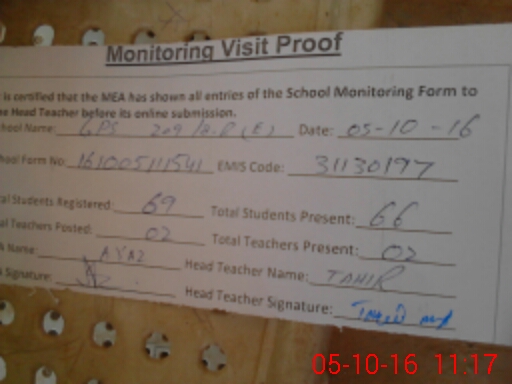 | Attendance Register | Head Teacher | MEA with School | Visit Proof |