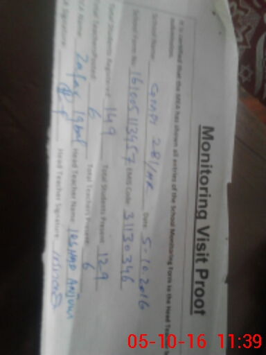 | Attendance Register | Head Teacher | MEA with School | Visit Proof |