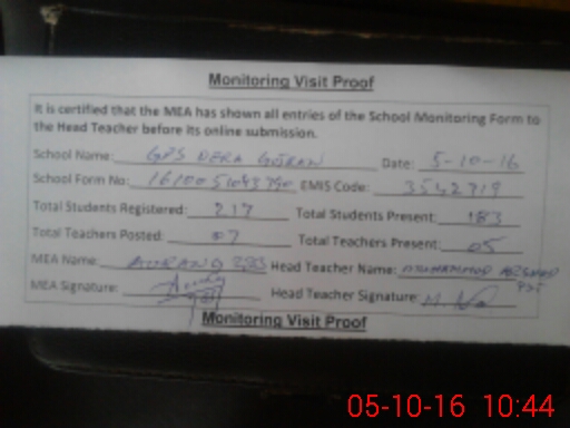 | EMIS Code: 35420719 | Name of School: GPS DERA GUJRAN | |||