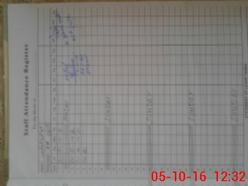 | CNIC | Full Name | Designation | R/C | Absence During Last Calender Month |