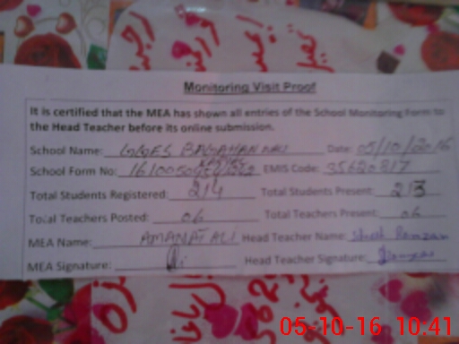 | Certified that this School was Inspected by the Undersigned MEA/DMO Today and the Information Stated Above is as Per Record. | |||||