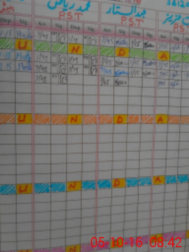 | CNIC | Full Name | Designation | R/C | Absence During Last Calender Month |