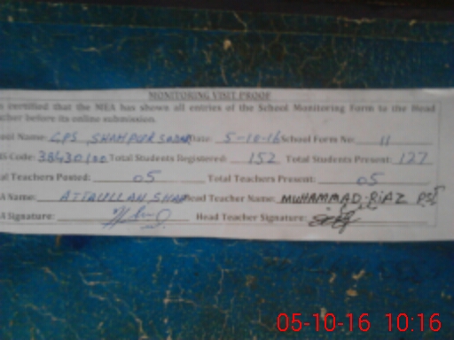 | EMIS Code: 38430100 | Name of School: GPS SHAH PUR SADAR | |||