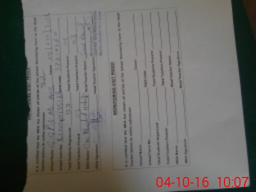 | Monitoring Date: 04-10-2016 | Start Time: 04-10-2016 09:35 AM | End Time: 04-10-2016 10:12 AM | Name of MEA: Kh**** ha**** | |