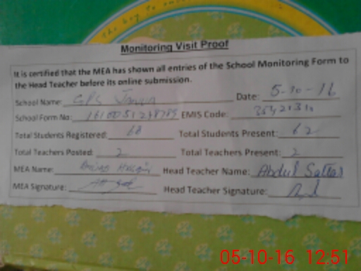 | Certified that this School was Inspected by the Undersigned MEA/DMO Today and the Information Stated Above is as Per Record. | |||||