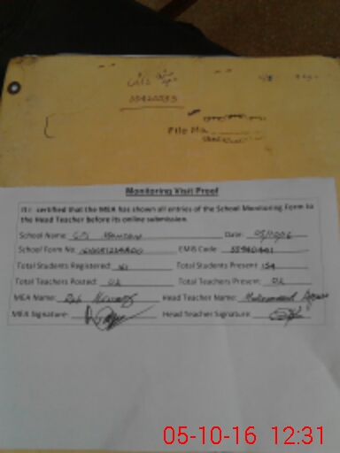 | Attendance Register | Head Teacher | MEA with School | Visit Proof |