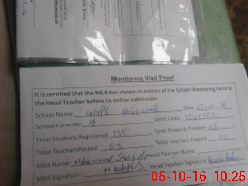 | Certified that this School was Inspected by the Undersigned MEA/DMO Today and the Information Stated Above is as Per Record. | |||||