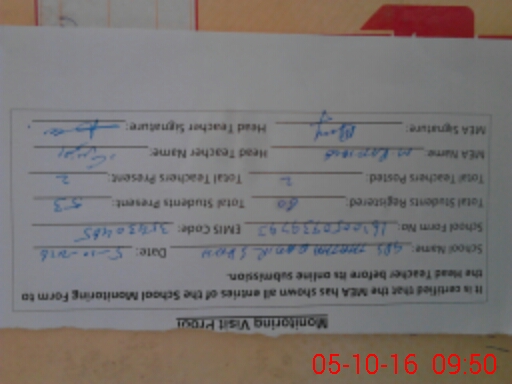 | Certified that this School was Inspected by the Undersigned MEA/DMO Today and the Information Stated Above is as Per Record. | |||||