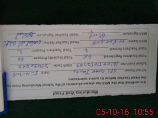 | Attendance Register | Head Teacher | MEA with School | Visit Proof |