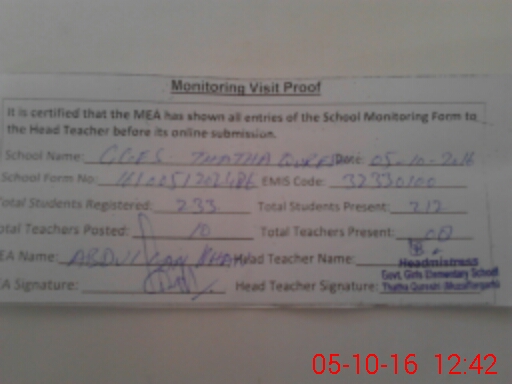 | EMIS Code: 32330100 | Name of School: GGES THATHA QURESHI | |||