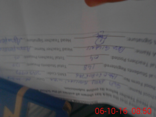 | Name: AZ**** PE**** Designation: (School Headmaster's/Headmistress's) PST Phone/Cell Number: 03**** |