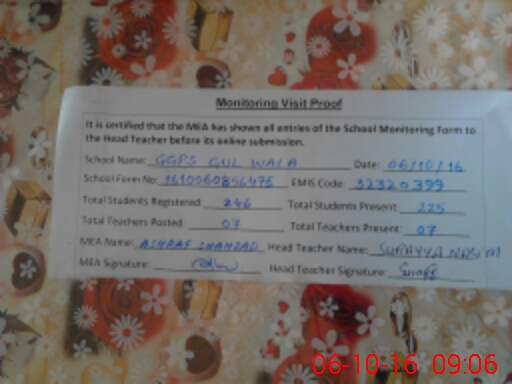 | EMIS Code: 32330399 | Name of School: GGPS GULL WALA | |||