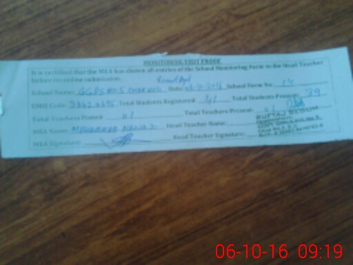 | Certified that this School was Inspected by the Undersigned MEA/DMO Today and the Information Stated Above is as Per Record. | |||||