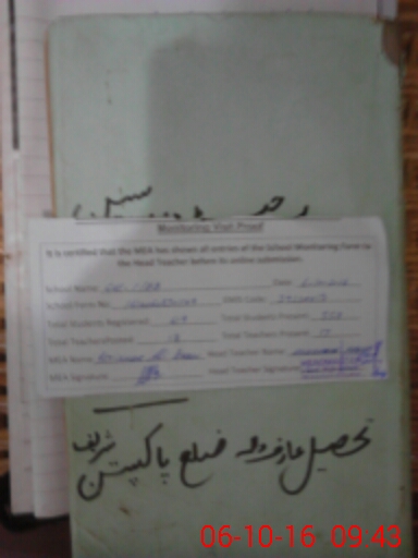 | Certified that this School was Inspected by the Undersigned MEA/DMO Today and the Information Stated Above is as Per Record. | |||||
