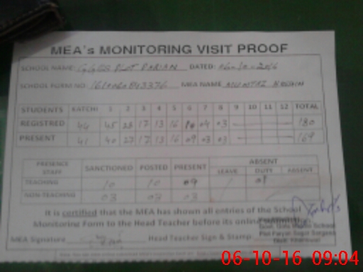 | Attendance Register | Head Teacher | MEA with School | Visit Proof |