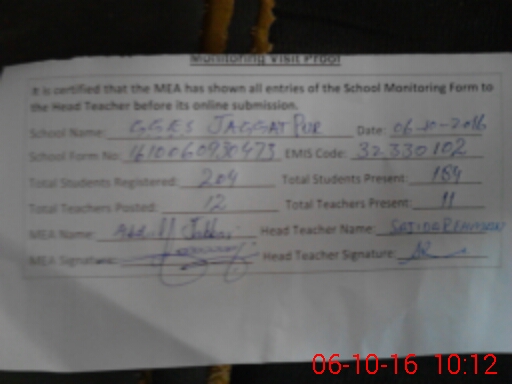 | EMIS Code: 32330102 | Name of School: GGES JAGGAT PUR | |||