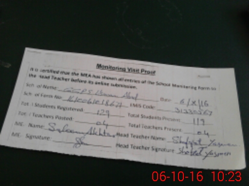 | Attendance Register | Head Teacher | MEA with School | Visit Proof |