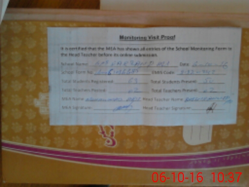 | Attendance Register | Head Teacher | MEA with School | Visit Proof |