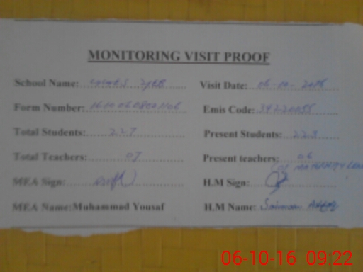 | Certified that this School was Inspected by the Undersigned MEA/DMO Today and the Information Stated Above is as Per Record. | |||||