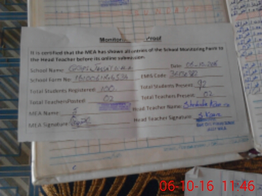 | Attendance Register | Head Teacher | MEA with School | Visit Proof |