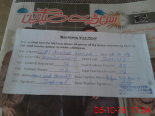 | EMIS Code: 31330357 | Name of School: GPS YOUSAF NAGAR | |||