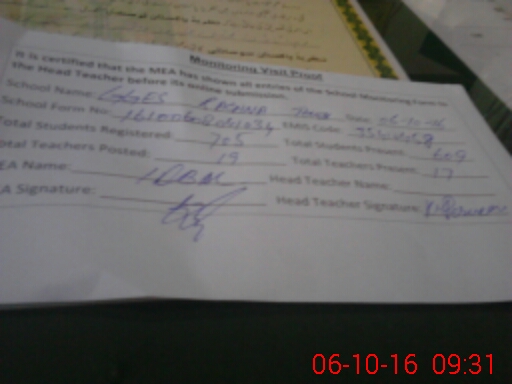 | Certified that this School was Inspected by the Undersigned MEA/DMO Today and the Information Stated Above is as Per Record. | |||||