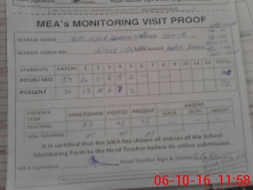 | Certified that this School was Inspected by the Undersigned MEA/DMO Today and the Information Stated Above is as Per Record. | |||||