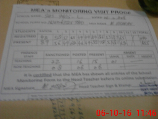 | Certified that this School was Inspected by the Undersigned MEA/DMO Today and the Information Stated Above is as Per Record. | |||||