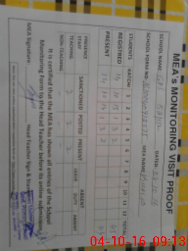 | Monitoring Date: 04-10-2016 | Start Time: 04-10-2016 08:33 AM | End Time: 04-10-2016 09:16 AM | Name of MEA: Kh**** Me**** | |