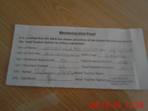 | EMIS Code: 31330144 | Name of School: GGHS CHAK NO. 72/NP | |||