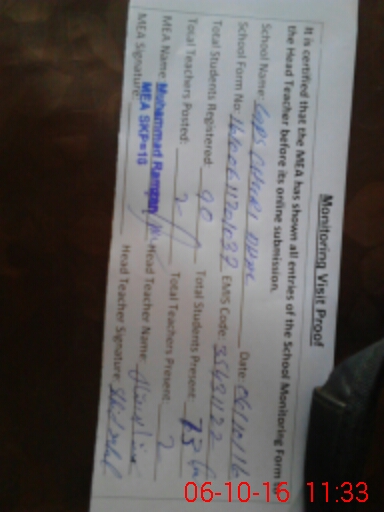 | Certified that this School was Inspected by the Undersigned MEA/DMO Today and the Information Stated Above is as Per Record. | |||||