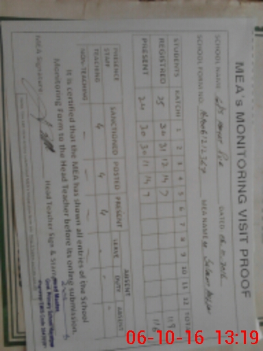 | Attendance Register | Head Teacher | MEA with School | Visit Proof |