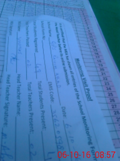 | Attendance Register | Head Teacher | MEA with School | Visit Proof |