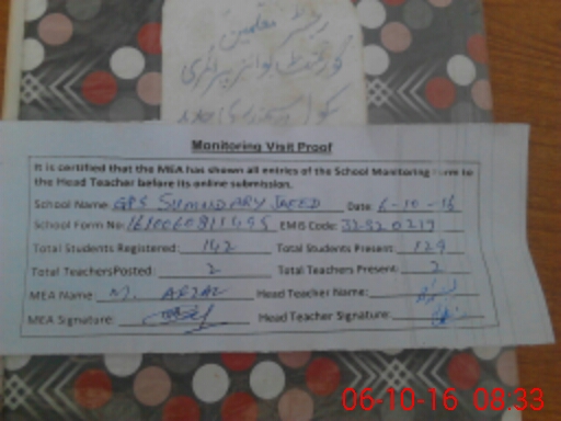 | Certified that this School was Inspected by the Undersigned MEA/DMO Today and the Information Stated Above is as Per Record. | |||||