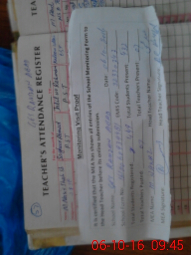 | Attendance Register | Head Teacher | MEA with School | Visit Proof |