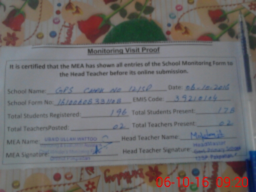 | EMIS Code: 39210104 | Name of School: GPS 12/SP P.O 8.S.P PAKPATTAN | |||