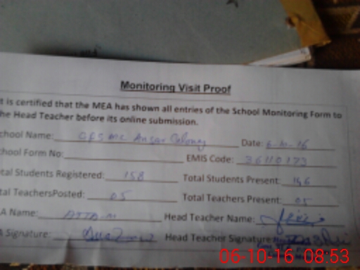 | EMIS Code: 36110173 | Name of School: GPS MC ANSAR COLONY BUDHLA ROAD MULTAN | |||