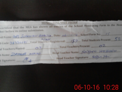 | Certified that this School was Inspected by the Undersigned MEA/DMO Today and the Information Stated Above is as Per Record. | |||||