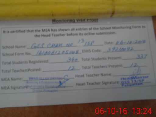 | EMIS Code: 39210092 | Name of School: GHS 13/SP P.O PAKPATTAN | |||