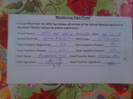 | Certified that this School was Inspected by the Undersigned MEA/DMO Today and the Information Stated Above is as Per Record. | |||||