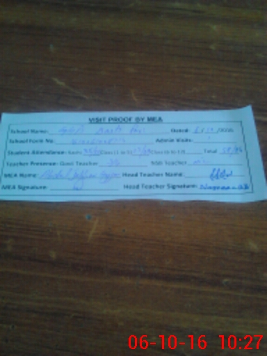 | Attendance Register | Head Teacher | MEA with School | Visit Proof |