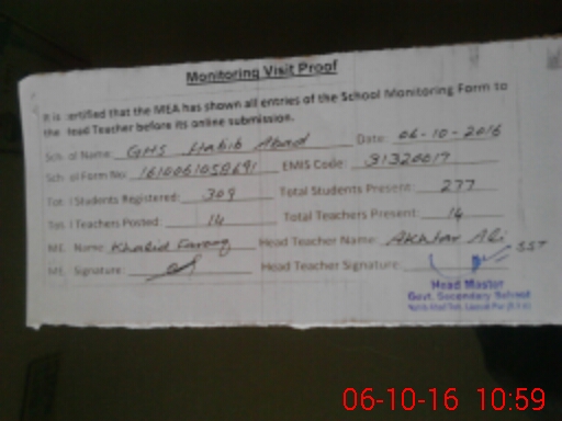 | EMIS Code: 31320017 | Name of School: GHS HABIB ABAD | |||