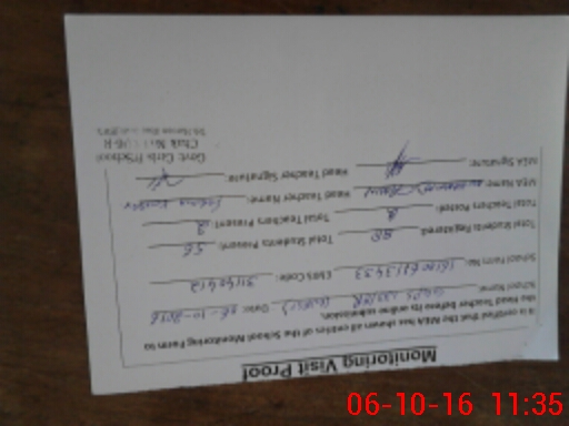 | Attendance Register | Head Teacher | MEA with School | Visit Proof |