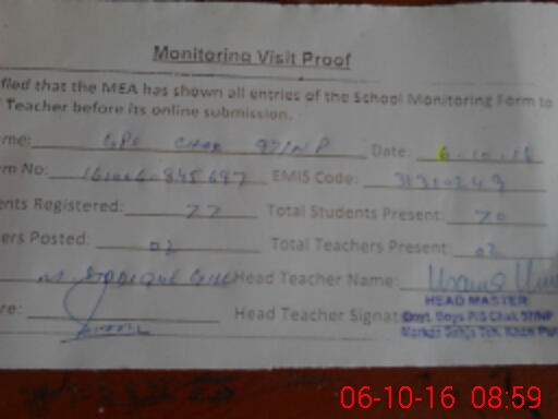 | Attendance Register | Head Teacher | MEA with School | Visit Proof |