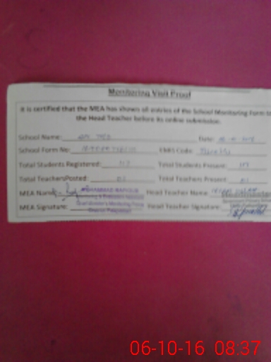 | Certified that this School was Inspected by the Undersigned MEA/DMO Today and the Information Stated Above is as Per Record. | |||||